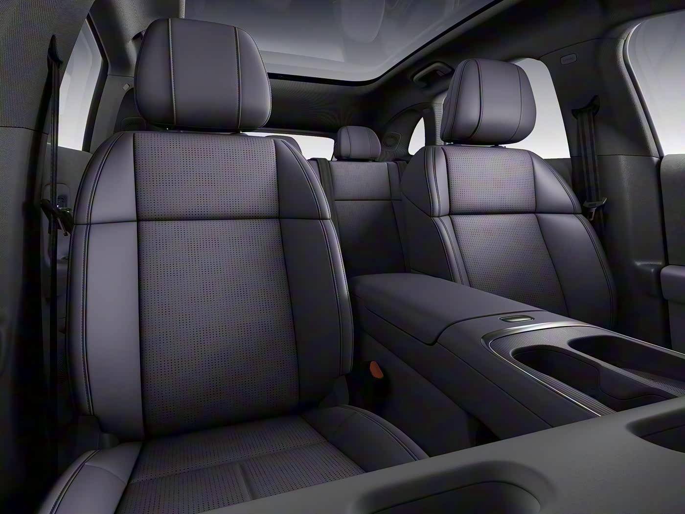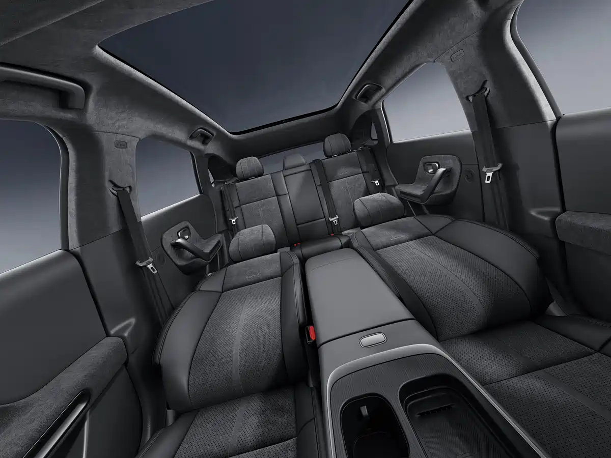 新车的内饰设计与自家的B系列看齐,所以可以看到新车也配备了矩形的全液晶仪表,而且它的仪表直接连接在方向盘转柱上,这个设计很有特点。当然了,悬浮式大尺寸触控屏也不会缺席,下方则是双通道的空调出风口设计,后面还有单无线充电面板和纵向布局的两个杯架。
